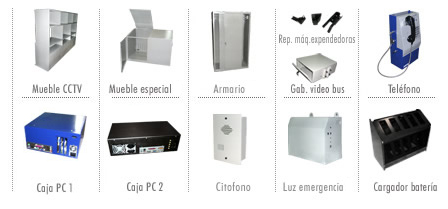 Productos orientados a diversos mercados como industria minera, iluminación de emergencia, telefonía, citofonía, cctv, accesorios, repuestos para máquinas expendedoras de alimentos, computación, etc; fabricados en fierro laminado en frío con espesores que van de los 0.8 mm a 1.9 mm o aceros inoxidable; integrándoles valor agregado como perforaciones realizadas con punzonadoras CNC, formas con corte láser, accesorios como por ejemplo chapas, bizagras externas soportes de tarjetas electrónicas, etc. Todos nuestros productos poseen terminaciones de excelente calidad con tratamientos de superficies anti oxidantes y recubrimientos con pinturas electro esmaltadas.