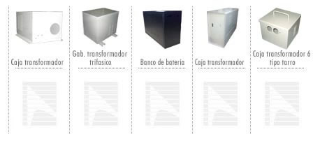 Productos fabricados en fierro laminado en frío de espesores que van de los 1.0 a 2.0 mm según características y especificaciones técnicas requeridas; Todos nuestros productos poseen tratamientos de superficies antioxidantes y con aplicación de pinturas electro esmaltadas. Dentro de estos productos existen aplicaciones de normas IP según en el ambiente en que se utilizarán; pueden ser fabricados en serie o como fabricar un gabinete especial de acuerdo a necesidades realizando perforaciones y montajes de los distintos componentes que se instalarán en el interior.
